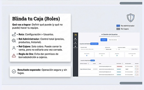 7) Permisos recomendados (Administrador vs Cajero)